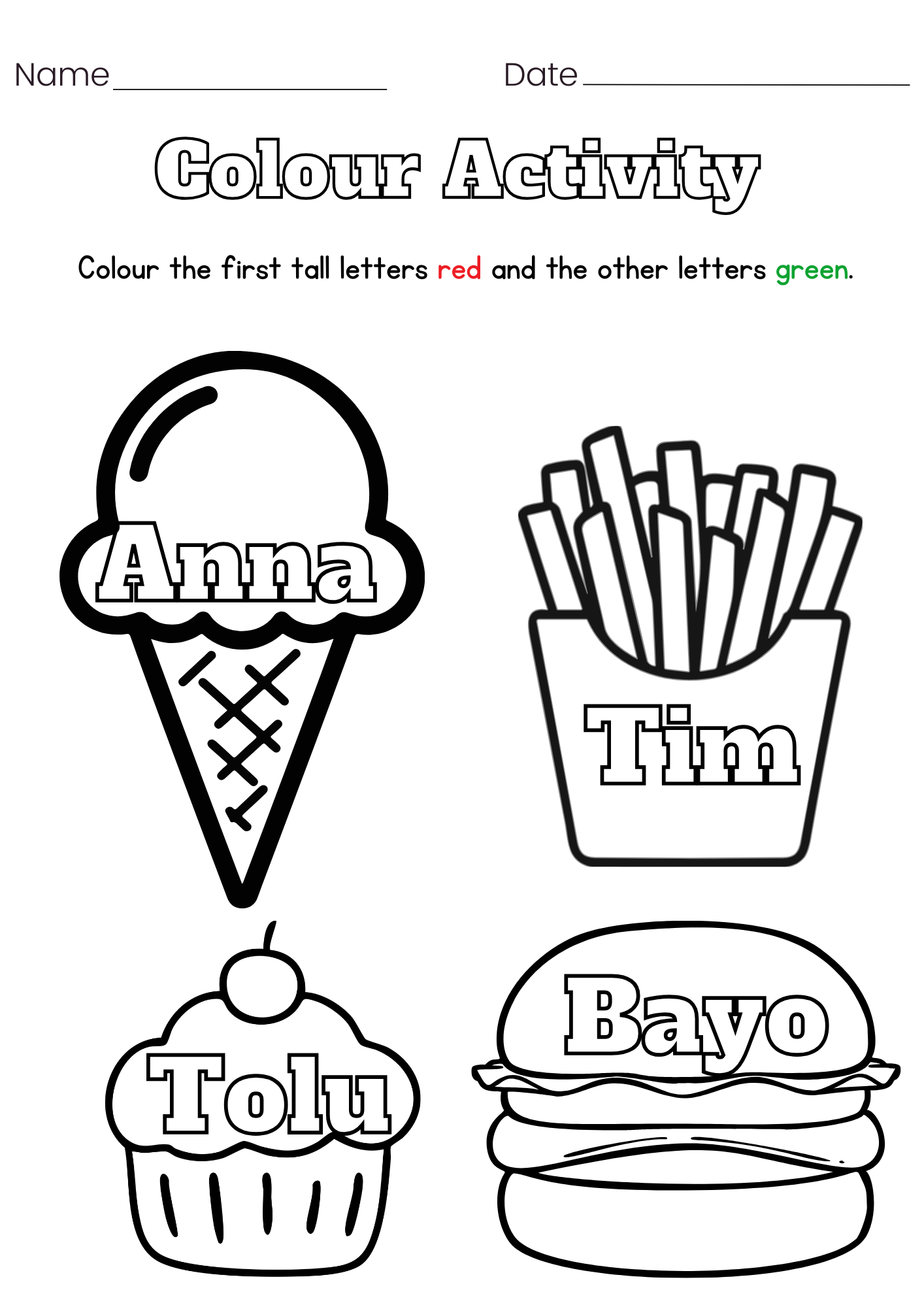 - Colour the “Tall Letters”: Students colour the large first letters of names. This helps them remember that every name needs a big start.